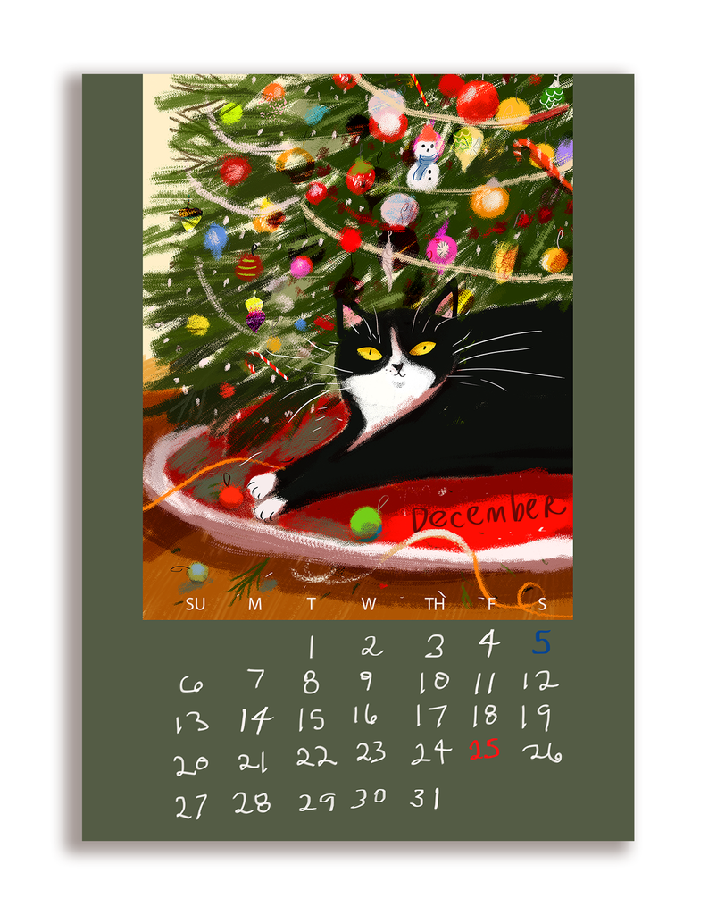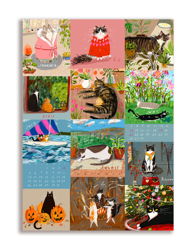 Our 2026 classic single sheet calendar is here! Featuring a selection of 12 different seasonal cat illustrations to bring you joy through out the new year! This is our classic individual sheet calendar, made in limited edition and super popular every year, this is one you'll want to purchase now before it's gone! (We always sell out!)